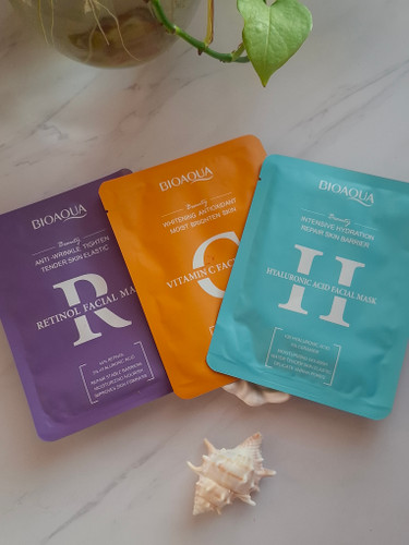 ماسک صورت ورقه ای بیو اکوا،ویتامیندسی،رتینول،هیالورونیک اسید
